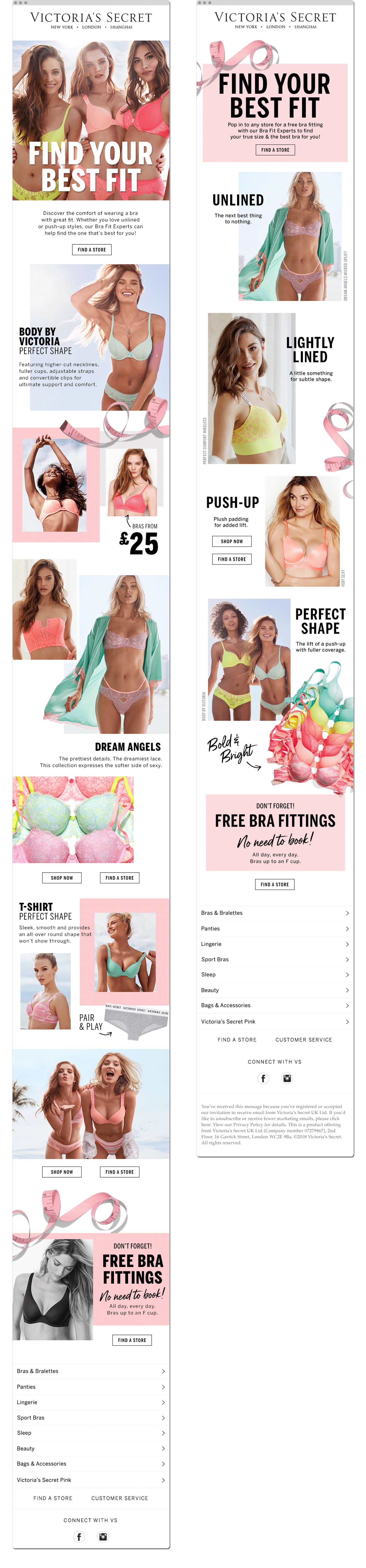 Emails designed for Bra Fit Campaigns in the FallĀ and Spring of 2019.